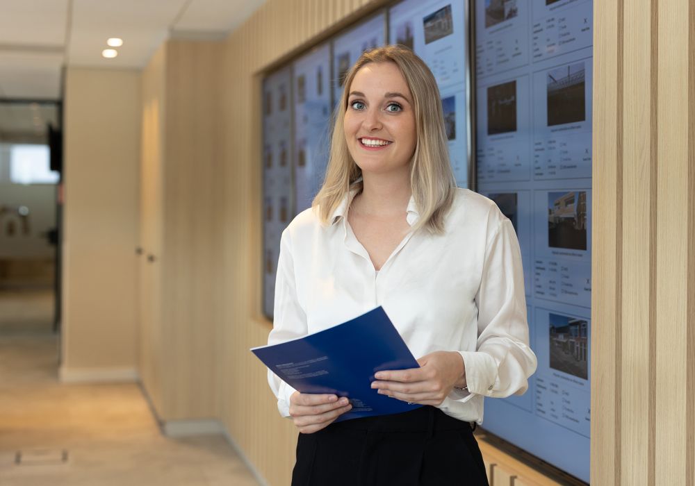 "Bij Mogelijk voel ik me erg warm ontvangen. Er is door Mogelijk veel tijd gemaakt voor introductie en kennismaking met andere afdelingen, dat ervaar ik als erg waardevol. Dit is mijn eerste kantoorbaan en ik moest wel erg wennen aan het binnen zijn de hele dag. Voorheen was ik er veel op uit voor bezichtigingen etc. Nu zit ik toch de hele dag achter de computer. Verder heb ik me enorm verbaasd over in welke gezelligheid hier serieuze transacties verlopen. Er is veel ruimte voor leuke dingen, en als stagiair word je overal bij betrokken. Zo stond ik ook 'model' in de laatste video om nieuwe stagiairs te werven. Ben je nieuwsgierig. Gewoon contact opnemen en laat je verrassen! " Aldus Margo.