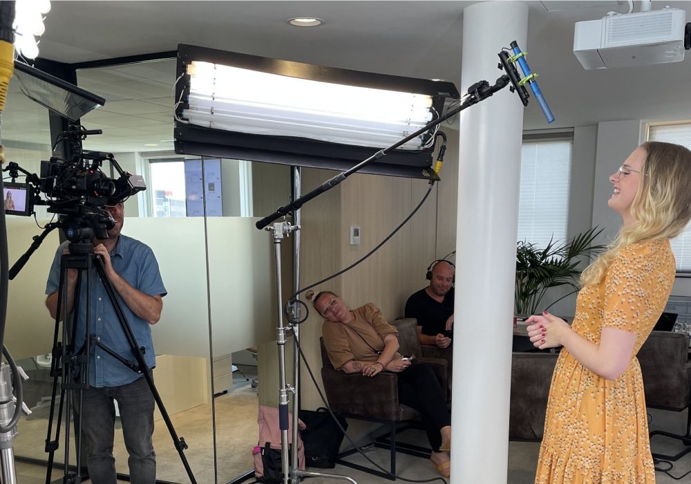 Wij vroegen het aan Isa, die zich als stagiair heeft ingezet voor Compliance en nu bij Mogelijk aan de slag is gegaan als eerste echte baan. Isa: "Bij Mogelijk wordt er niet alleen gedacht aan hard werken, maar ook aan ontspanning. Vanuit school wordt het werkleven als iets heel serieus neergezet, dus ik had van tevoren niet zoveel borrels en feestjes verwacht. Als ik Mogelijk vergelijk met mijn vorige stage heb ik het idee dat ik hier beter contacten heb kunnen leggen met collega’s doordat de sfeer dit meer toelaat. We doen leuke dingen. Zo was ik ineens onderdeel van een toffe videoproductie (zie foto). Bij Mogelijk is elke dag anders en heb ik het idee dat ik ook eigen inbreng kan geven in wat ik doe."